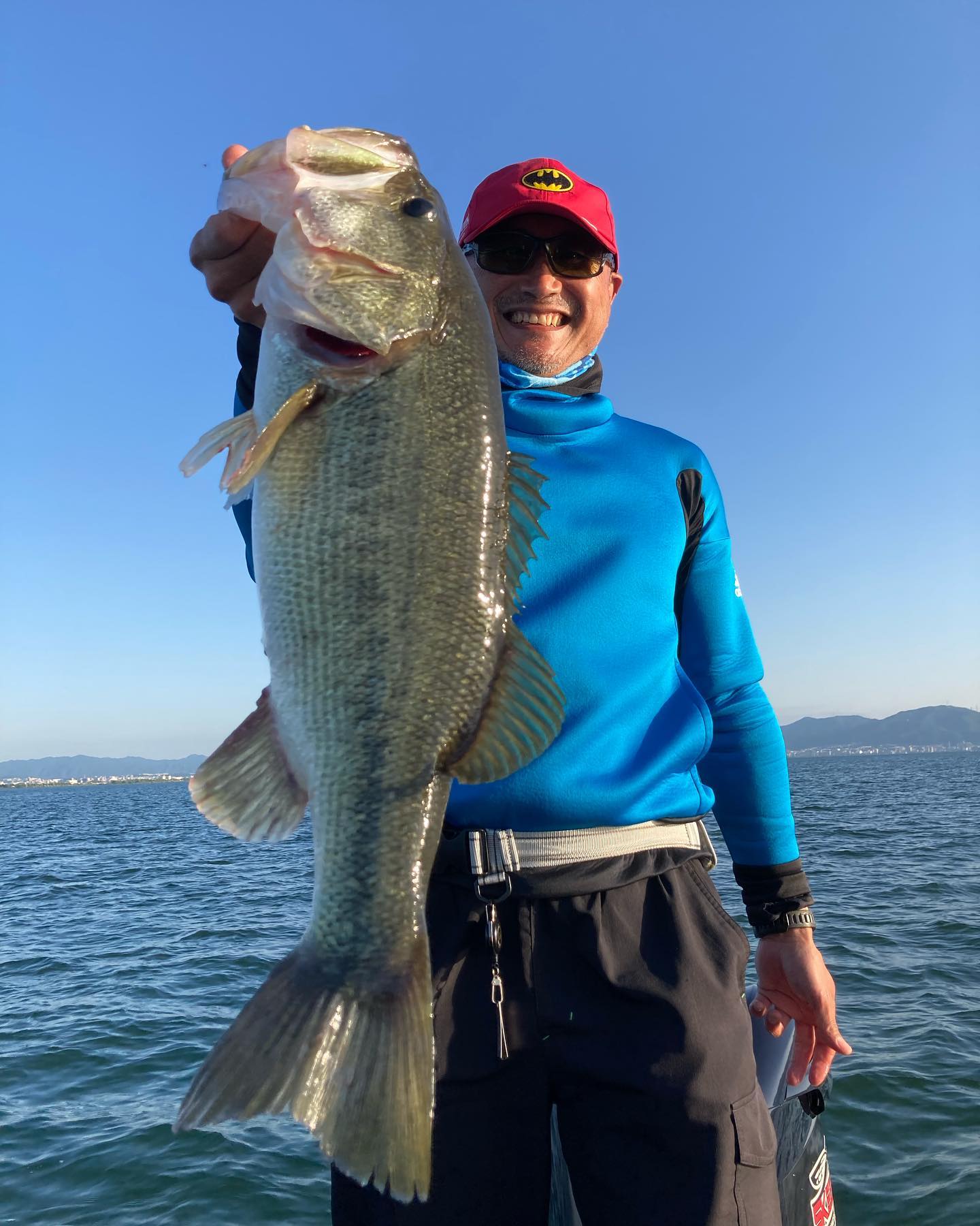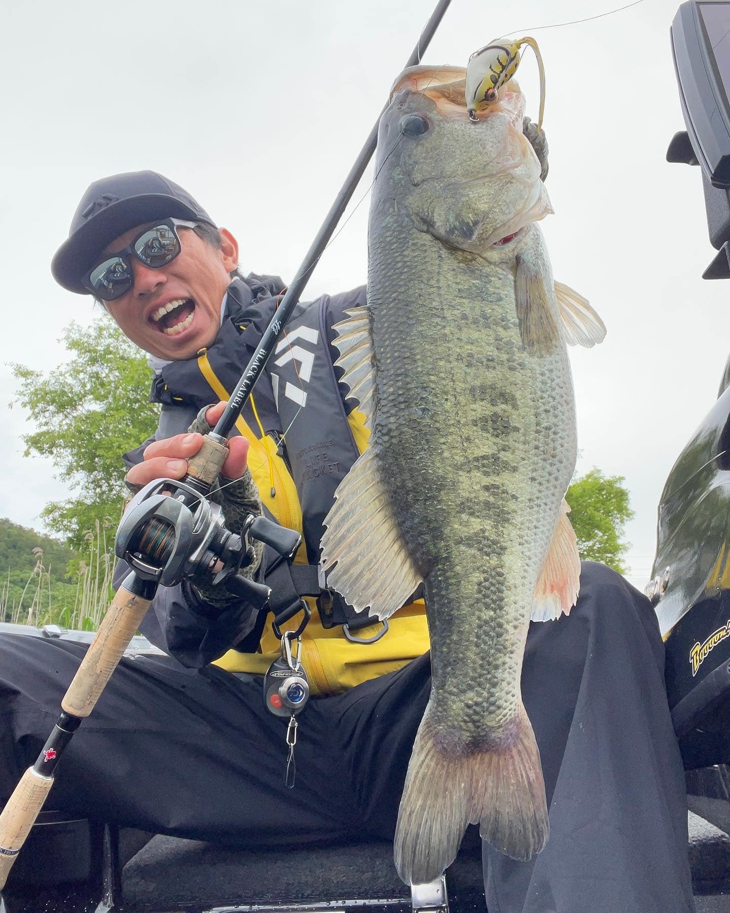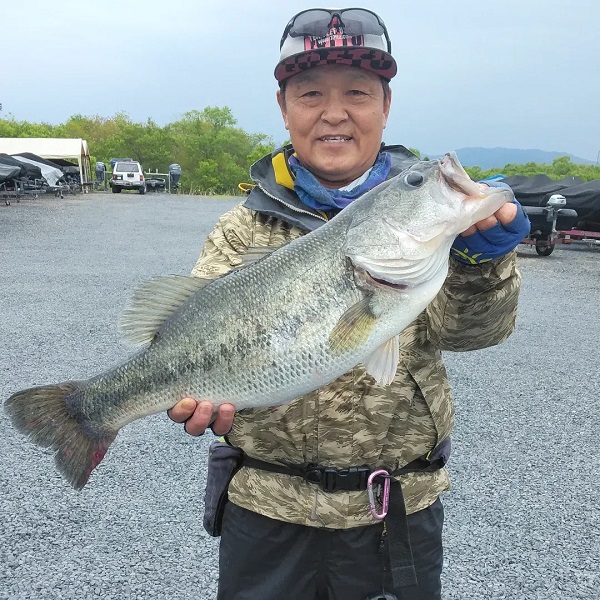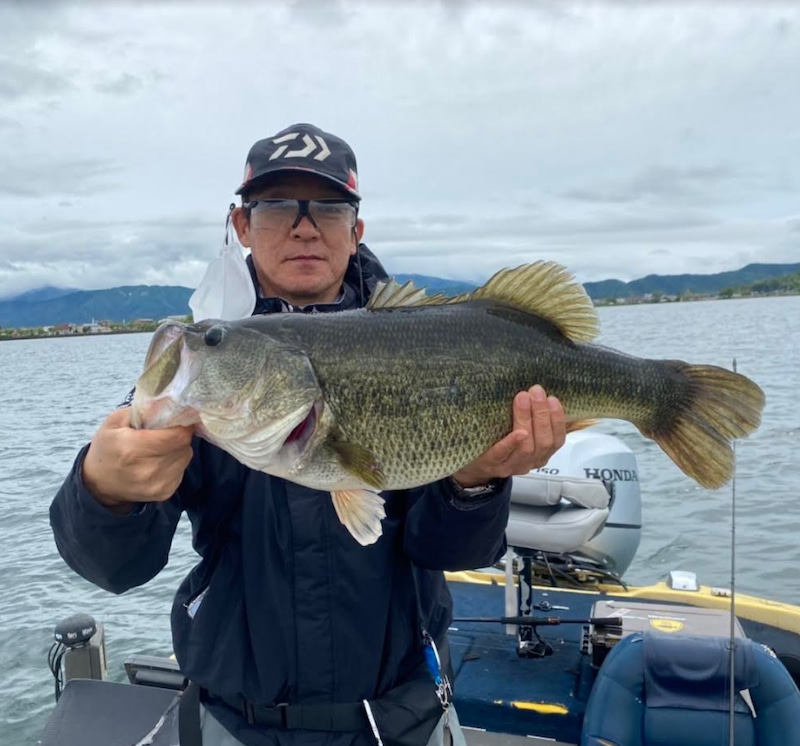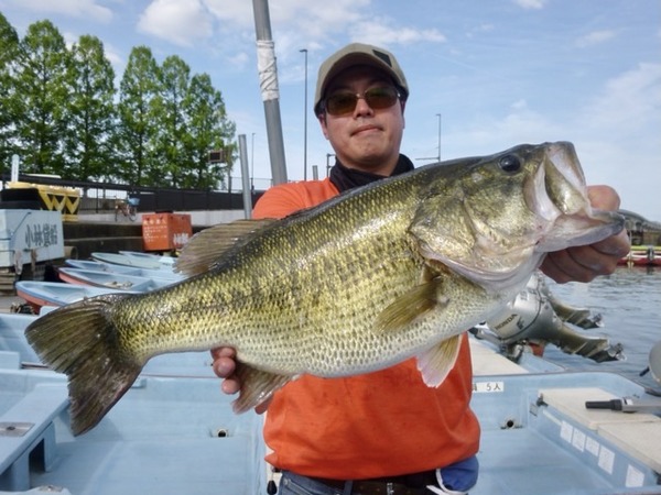 初のバスボートフィッシングで55cm、40cm