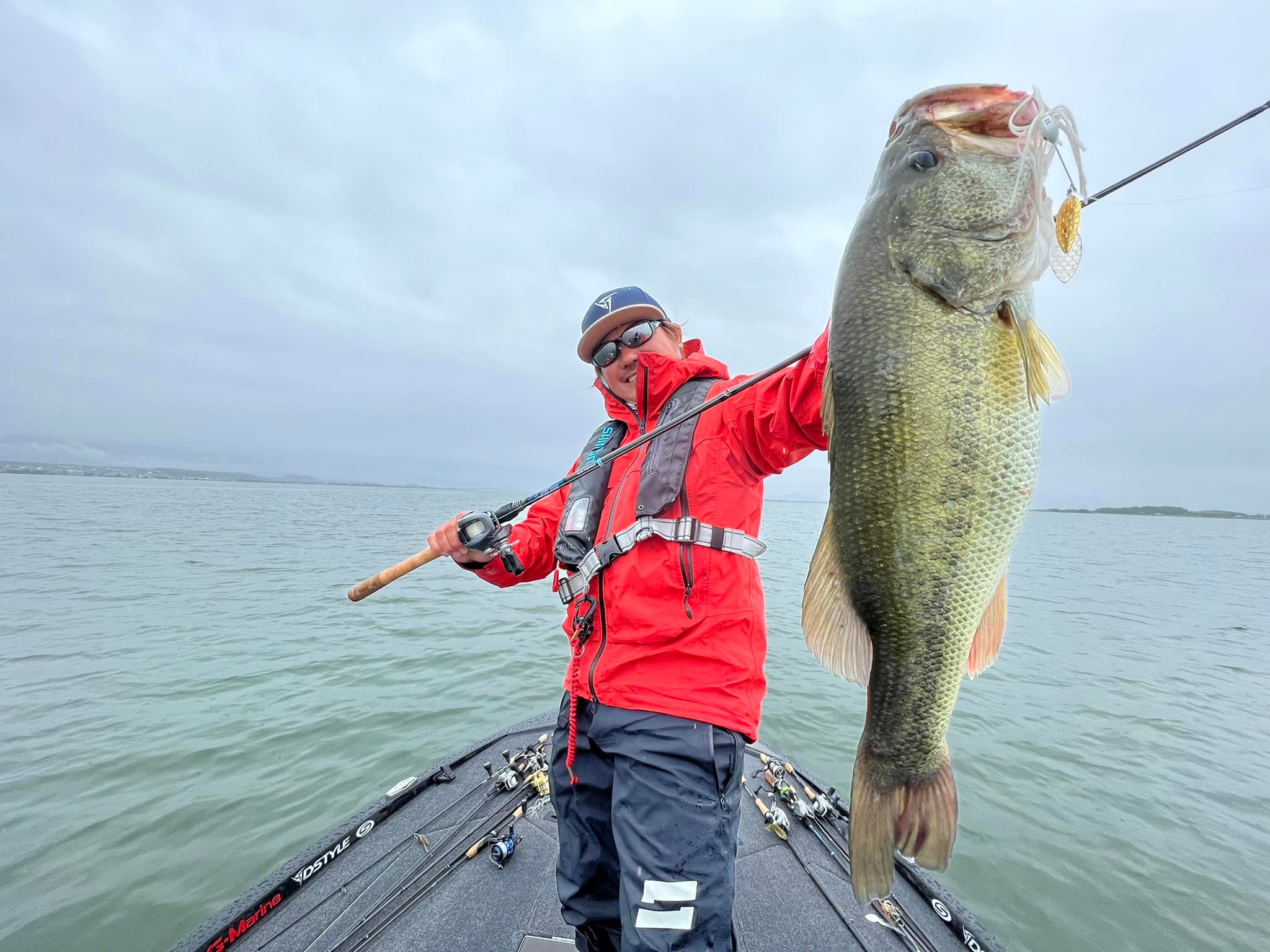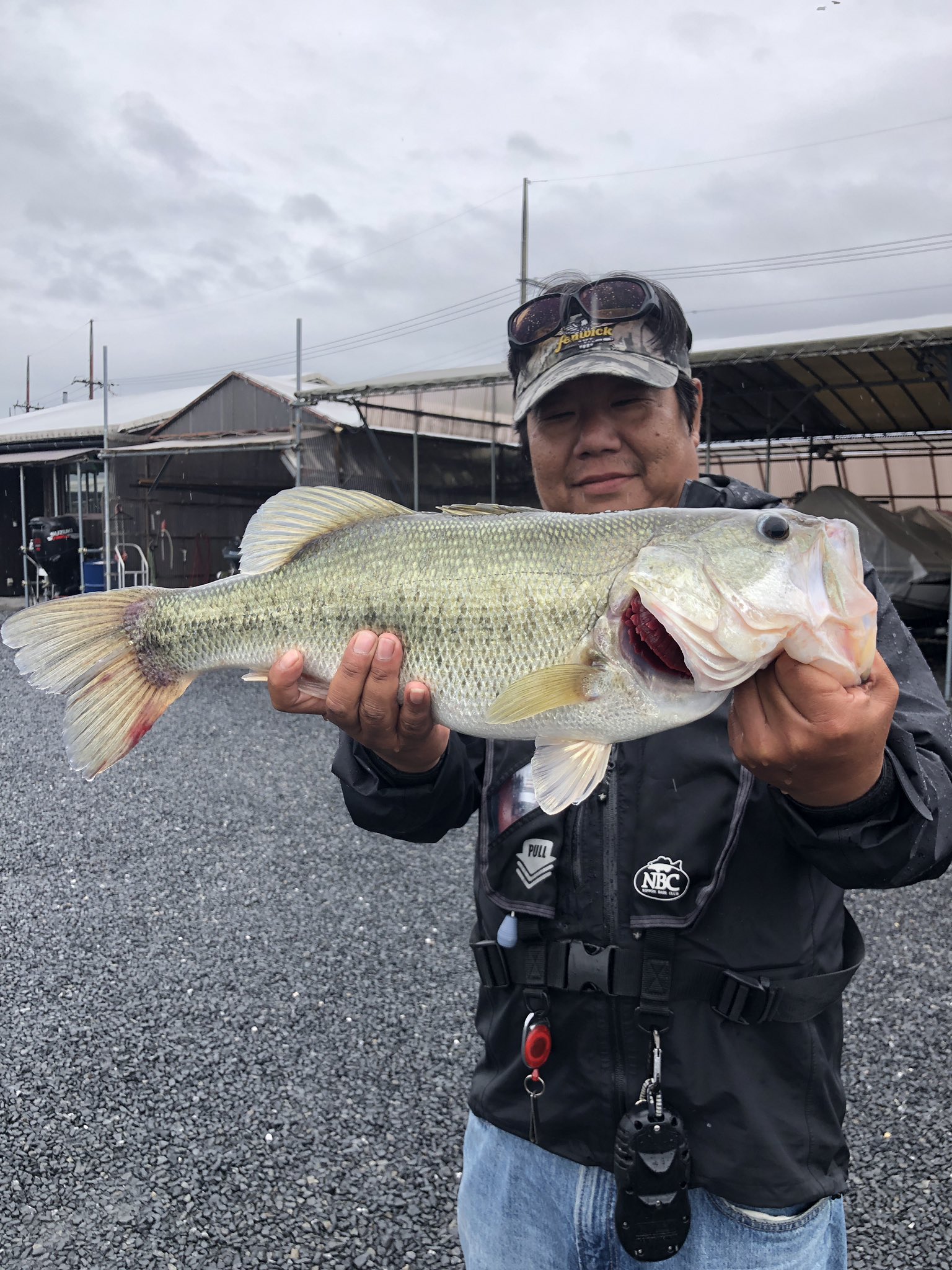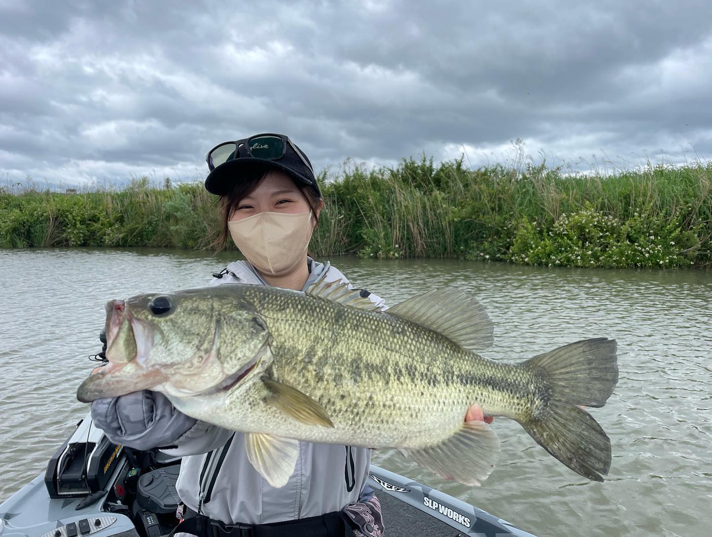 初のバスボートフィッシングで55cm、40cm