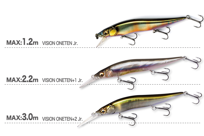 VISIONONETEN+2Jr.は、USツアーで圧倒的実績を誇るONETEN Jr. +1をベースとし、ミッド~ディープレンジにおいて更なるアドバンテージをもたらすべく開発されたロングビルジャークベイト。