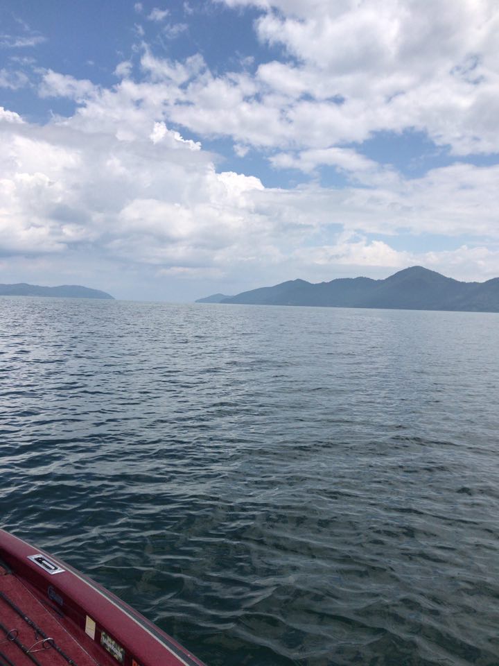 北湖東岸ボート少なめ、アオコっぽい色になってます。
