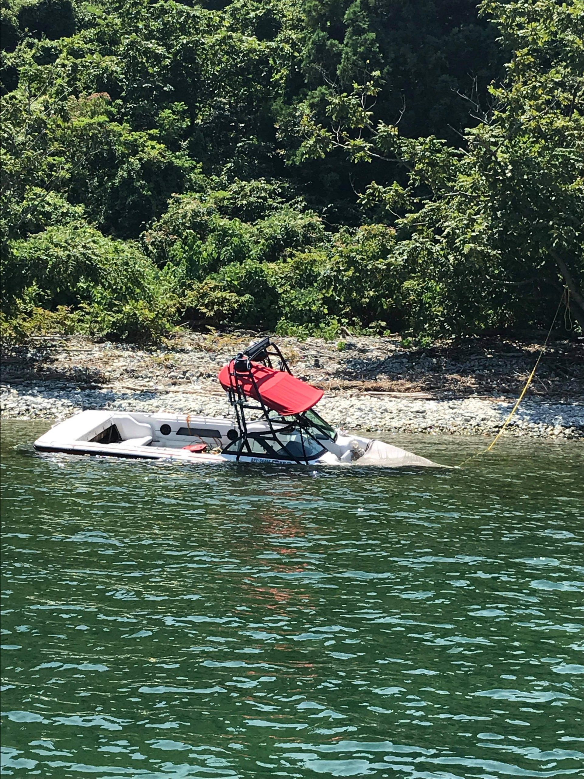 沖島北側でウェイクボートが半沈