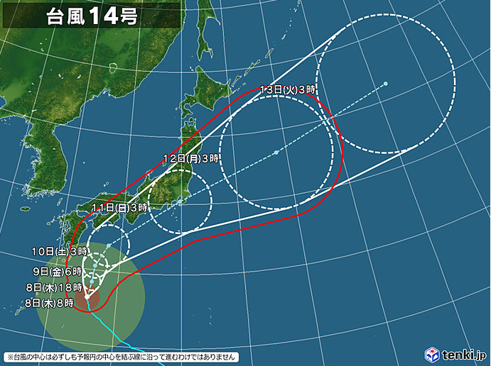 台風14号の行方@8日9時
