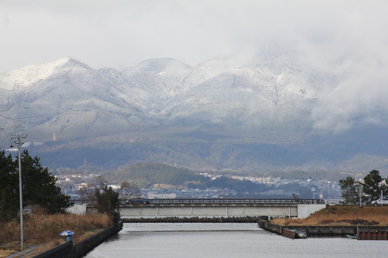 比良山系が雪化粧しました。