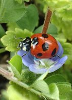 畑では、朝の日差しを浴びてオオイヌノフグリが青い小花を開くと、周囲をテントウムシやアリが盛んにはい回っていた。