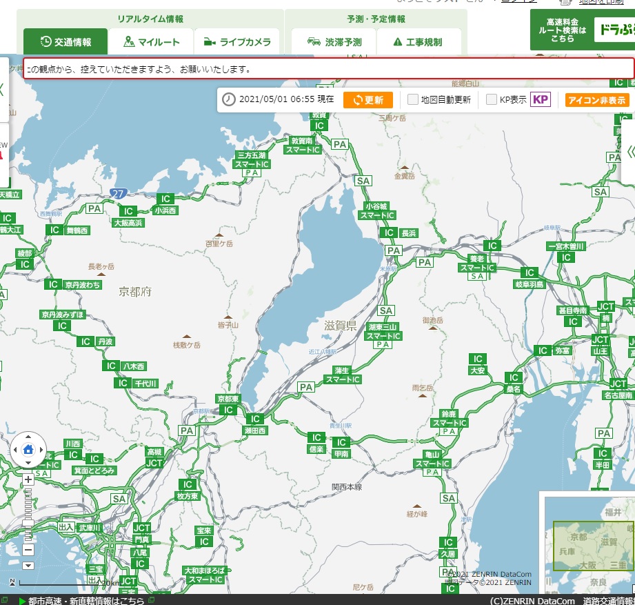 5/1 午前7時現在、関西の高速道路に渋滞なし