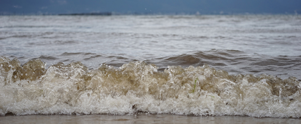 この時間、沖島方向を見ると既に湖上は荒れ気味。