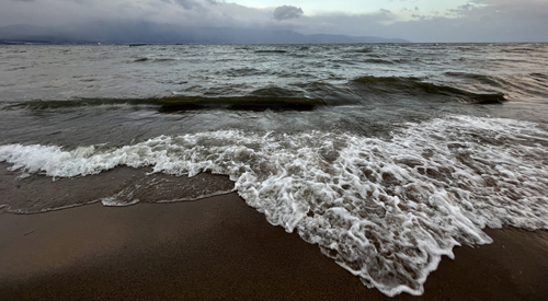 朝から強風が吹いている琵琶湖。7時頃に北湖東岸、吉川駐車場から湖上の様子を見てきました。