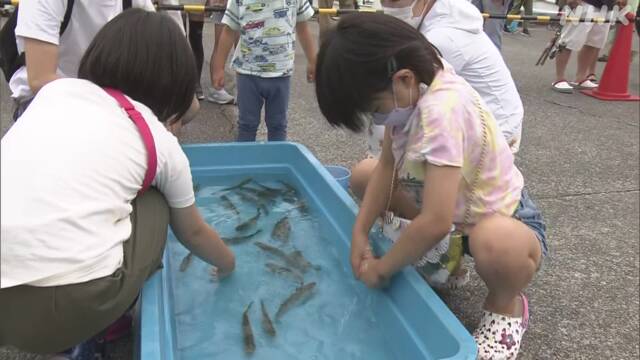 びわ湖の魚に触れながら水産業に理解を深めてもらおうと、滋賀県草津市で「水産まつり」が26日、3年ぶりに開かれ、多くの家族連れでにぎわいました。