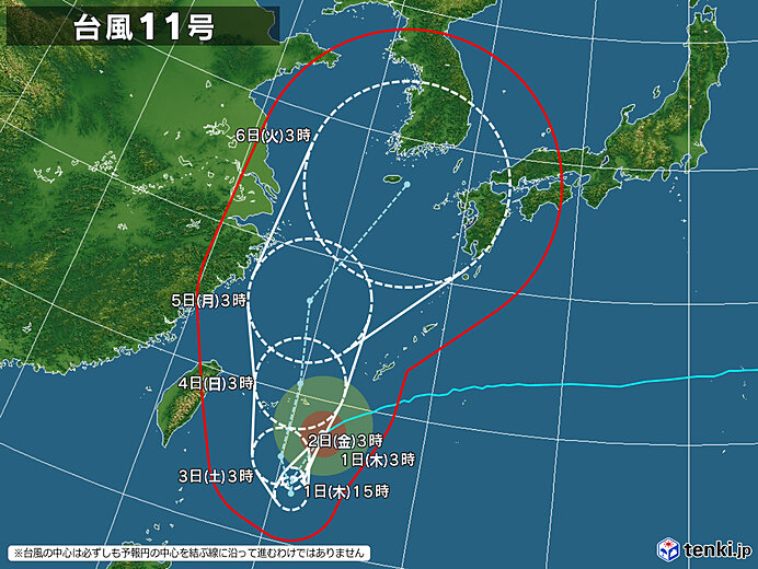 台風11号、発達しながら日本列島方面へ
