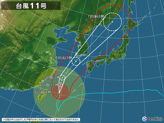 台風11号は9月6日(火)ころ、日本海を北東へ向けて通過しそうです。
