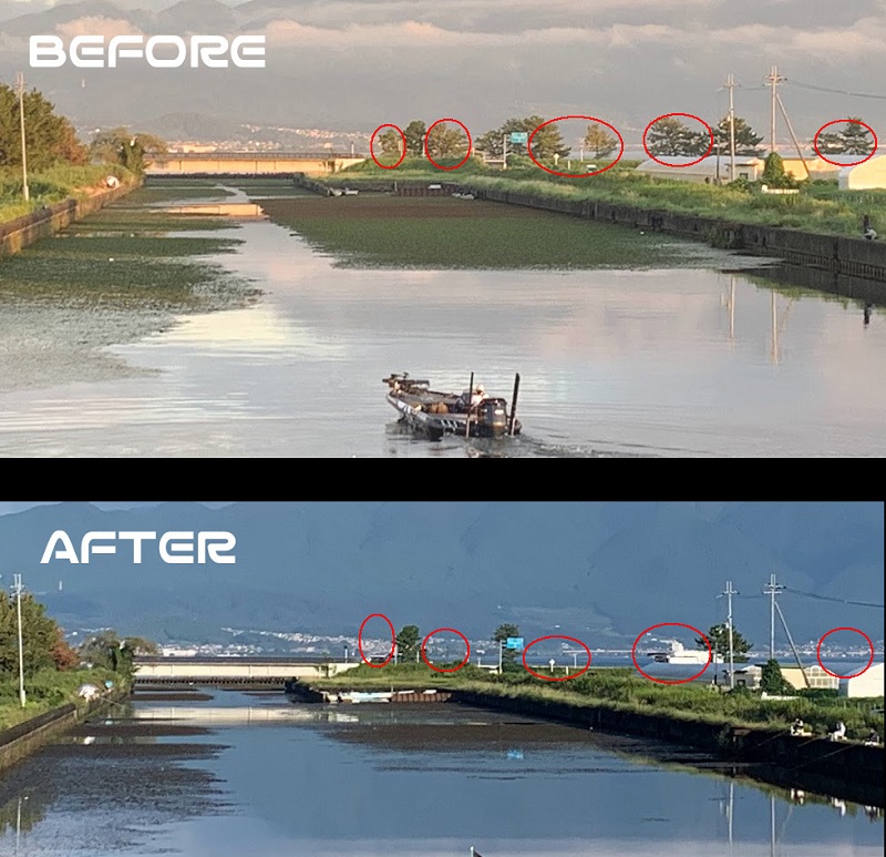 最近、枯れた松が大量に伐採されたので景色が変わってしまいました。野洲川あたりの湖岸道路を走っていると琵琶湖の見通しがよくなっています。