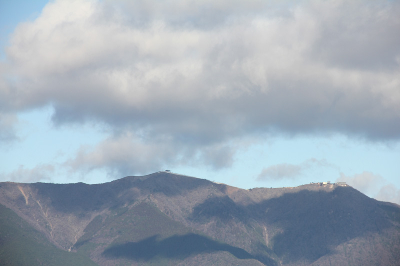 対岸の野洲川河口あたりから見てもゲレンデに白く雪が積もっているのが見えますね。