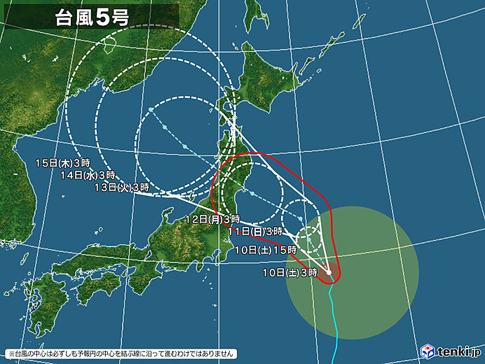 台風5号が進路を変えて北西に進む見込みで予報通りに進めば東北地方に上陸する可能性が出てきてます。