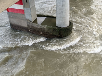 やや増水、濁りありという状況です。