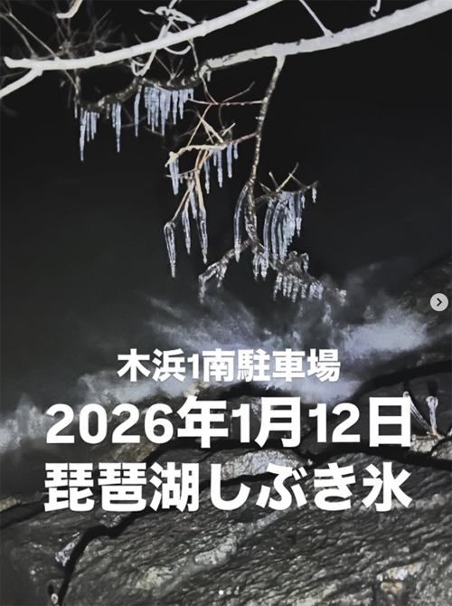 夜~明け方に気温が氷点下、夜から西寄りの強風が吹いてる・・・この条件を満たした今日は琵琶湖の東岸で「しぶき氷」が見れるかも?ということで出勤前の3時30分ごろに様子を見てきました。