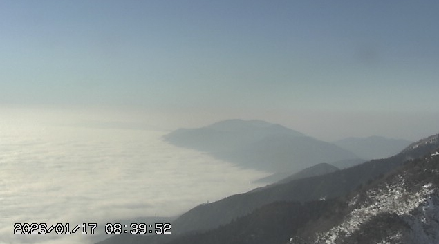 8時30分現在、野洲周辺では霧が発生して視界が500m程度となっていますが、びわ湖バレイさんのライブカメラを見ると琵琶湖上空はキレイな雲海が広がっているようです!