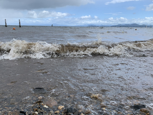 引き続き北寄りの風が強く岸には波が打ち寄せています。