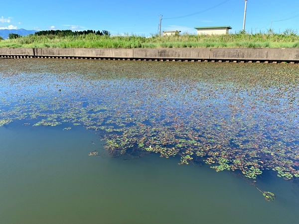 朝夕涼しくなって水温も下がってきて、いよいよ菱藻(ヒシモ)の葉が茶色く枯れてきました。