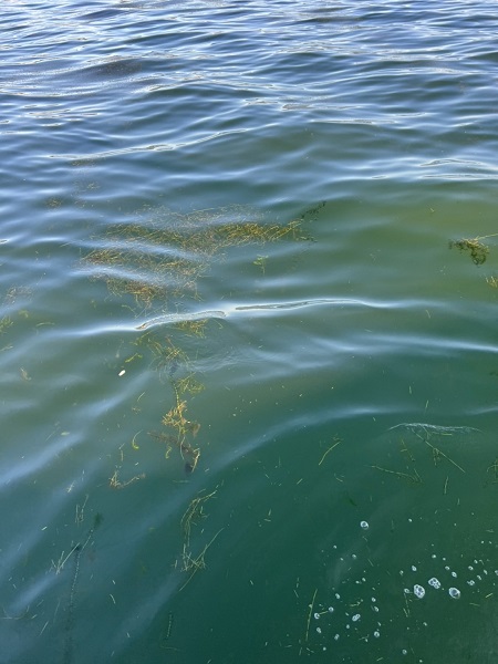 10/22 午前7時半、烏丸沖は藻刈りの切れ藻が大量