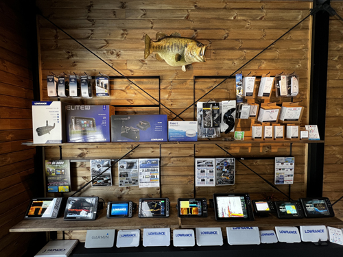 魚探の他にエレキ関連のパーツも充実。バスボートオーナーはもちろんレンタルボートで釣りをされている方も色々相談にのって頂けます。